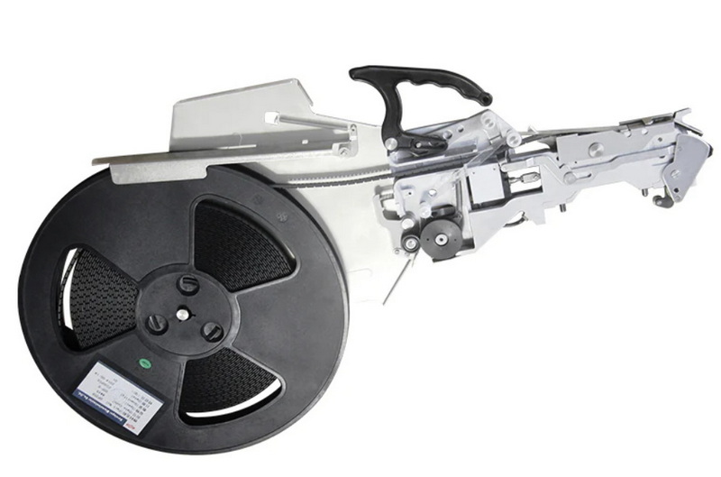 Tape and reel SMT Feeders represent the most prevalent type, processing embossed carrier tapes from 8mm to 72mm widths wound on reels up to 700mm diameter. Electric or pneumatic motors drive sprockets that engage tape pockets, advancing components sequentially. Cover tape peel mechanisms—pivoting arms with controlled angles—separate adhesive films without disturbing parts, directing waste to take-up spools.