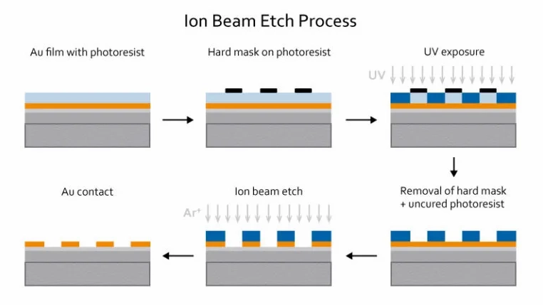 Ion Beam Etching is a highly precise surface modification technique used in microfabrication and nanotechnology. This technology employs a focused beam of high-energy ions, typically generated from a plasma source, to selectively remove material from a substrate’s surface. Here are the key aspects of IBE technology:
